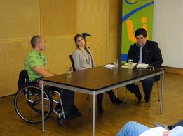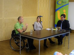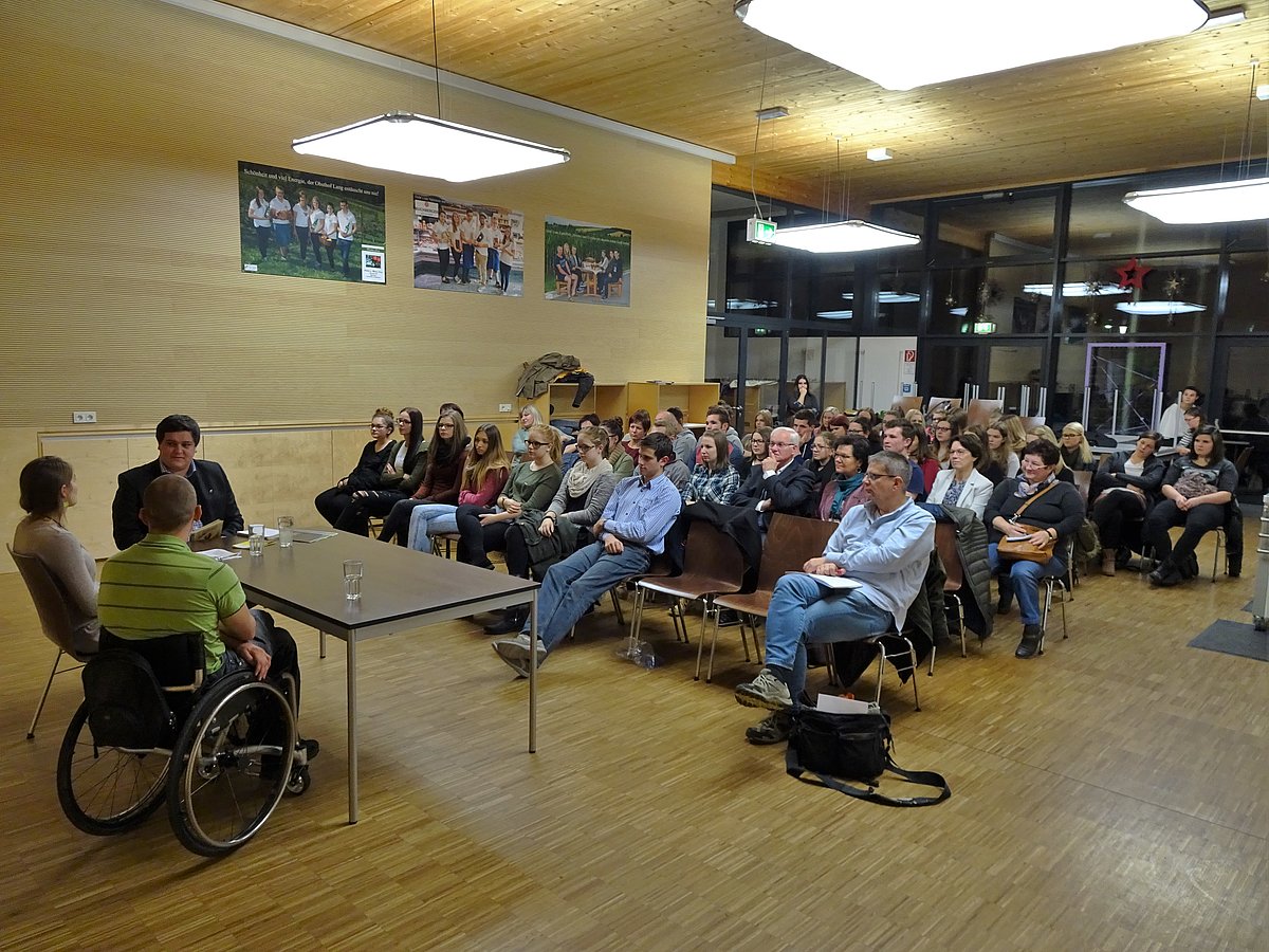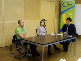 Die Referenten des Abends waren keine geringeren als der Paratriathlon Weltmeister, Ironman Weltrekordhalter und Silbermedaillen-Gewinner bei den Paralympics in Rio de Janeiro, Thomas Frühwirth und Maria-Theresa Haindl, die als Einsatzkoordinatorin und Familienentlasterin im Verein “Chance B” tätig ist. Thomas Frühwirth und Maria-Theresa Haindl erzählten von ihren Lebensgeschichten, berichteten über Barrieren, erklärten ihre Ziele und regten zur Diskussion an. Von der Veranstaltung konnte sich das Publikum vor allem eines mitnehmen, dass man von einem Rollstuhlfahrer wie Thomas Frühwirth lernen kann, das Leben richtig zu leben.