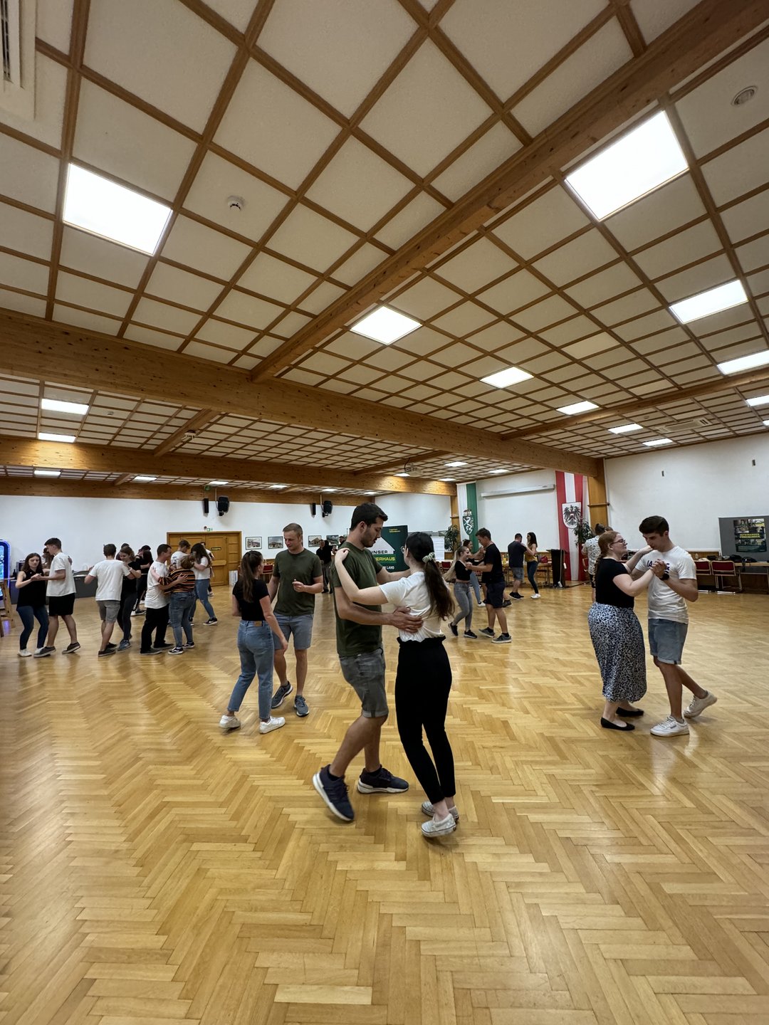 Im April durften wir zum lang ersehnten Bezirkstanzkurs laden, welchen wir in den Räumlichkeiten vom Lagerhaus Wechselgau Hartberg abhalten durften. Insgesamt 18 Tanzpärchen nahmen teil und es wurde mit höchster Motivation Tanz für Tanz erlernt. Neben den klassischen Tänzen wie Walzer, Foxtrot, Discofox und Cha-cha-cha, durften wir auch in die volkstümlichen Tänze Polka und in den Boarischen hineinschnuppern. Durch die sehr sympathische und vor allem humorvolle Art unserer beiden Tanzlehrer Margret und Herbert kam der Spaß auch nicht zu kurz.