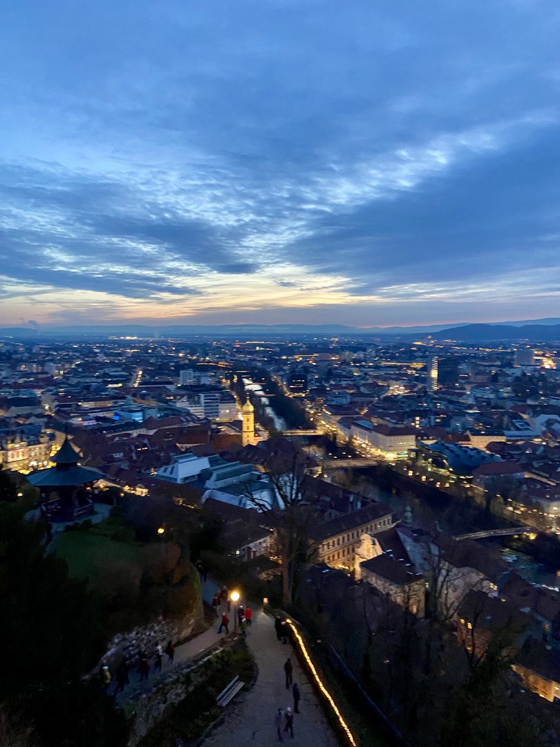 Wir erkundeten die Stadt und besuchten die verschiedensten Christkindlmärkte, probierten leckere Köstlichkeiten und genossen die weihnachtliche Stimmung. Ein besonderes Highlight war der Aufstieg zum Grazer Uhrturm, von wo aus wir einen wunderschönen Ausblick über die Stadt hatten.