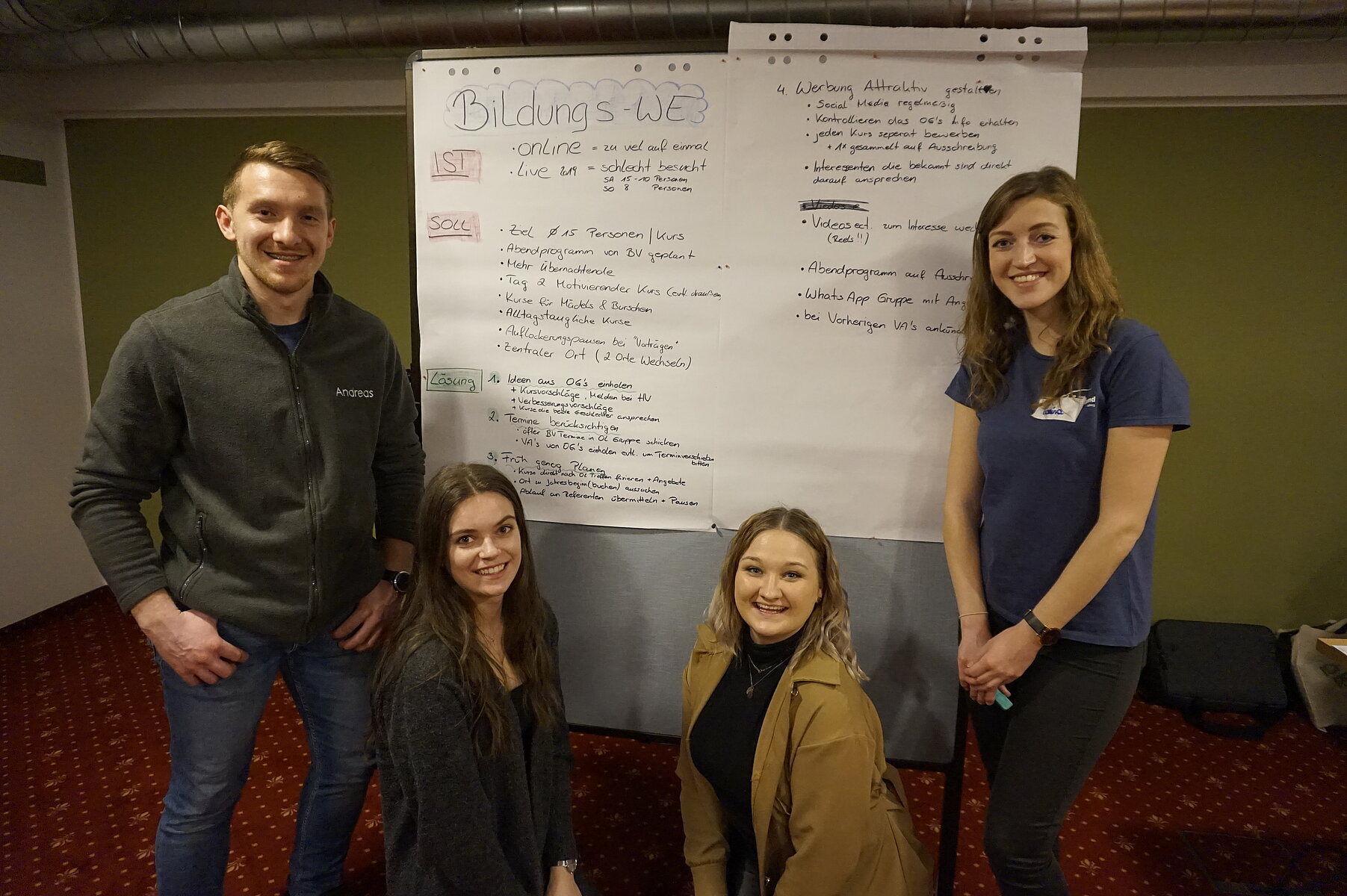 Mit viel Herzblut und kreativen Ideen starteten wir in unsere diesjährige Klausur. Um mit neuem Wissen gewappnet zu sein und allen Ortsgruppen ein vielfältiges Jahresprogramm bieten zu können, trafen wir uns am 27. und 28. Dezember 2021 beim Kutscherwirt in Vorau. Nach einem absolut gelungenem Teambuilding am Montag, erfuhren wir, Dank unserem motivierten LJ Trainer Georg, einiges über diverse Gegebenheiten in einer Straßenbahn, lernten bestmögliche Schritte im Falten eines Papierfliegers und übten fleißig daran, etwaige Unterschiede zwischen Team und Gruppe zu erkennen. Auch wenn der Zollstock das ein oder andere Team auf eine amüsante Art und Weise zur Verzweiflung brachte, so blieb uns am Ende des Tages eine lustige, erfahrungsreiche Zeit voller Action und Spaß in Erinnerung. Am Abend wurden wir dann neuerlich aktiv und es folgten neben der Einteilung und Besprechung aller OG Betreuer, auch eine umfassende Jahresplanung, sowie die Über- und Bearbeitung einiger vergangener Veranstaltungen, damit diese wieder in neuem Glanz erstrahlen können. Im Anschluss an eine leckere Stärkung ging es dann bis spät in die Nacht mit unserer ersten BV Sitzung weiter und wir ließen diese mit einem spannenden und ausführlichen Kennenlernen ausklingen.