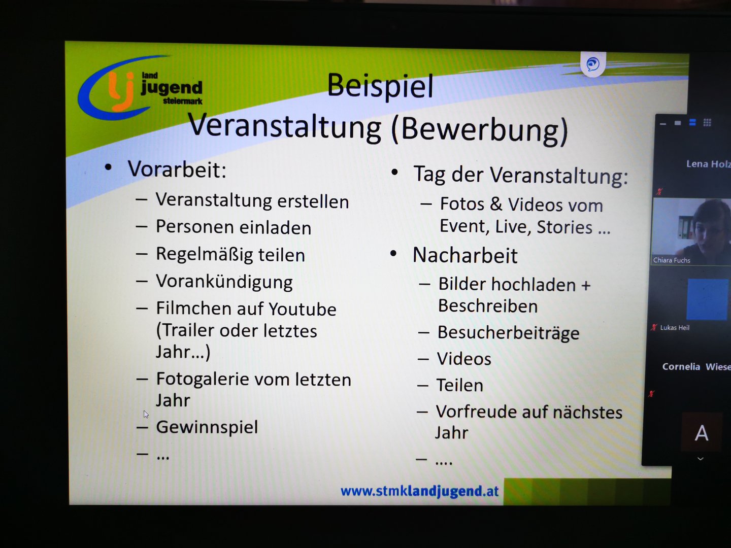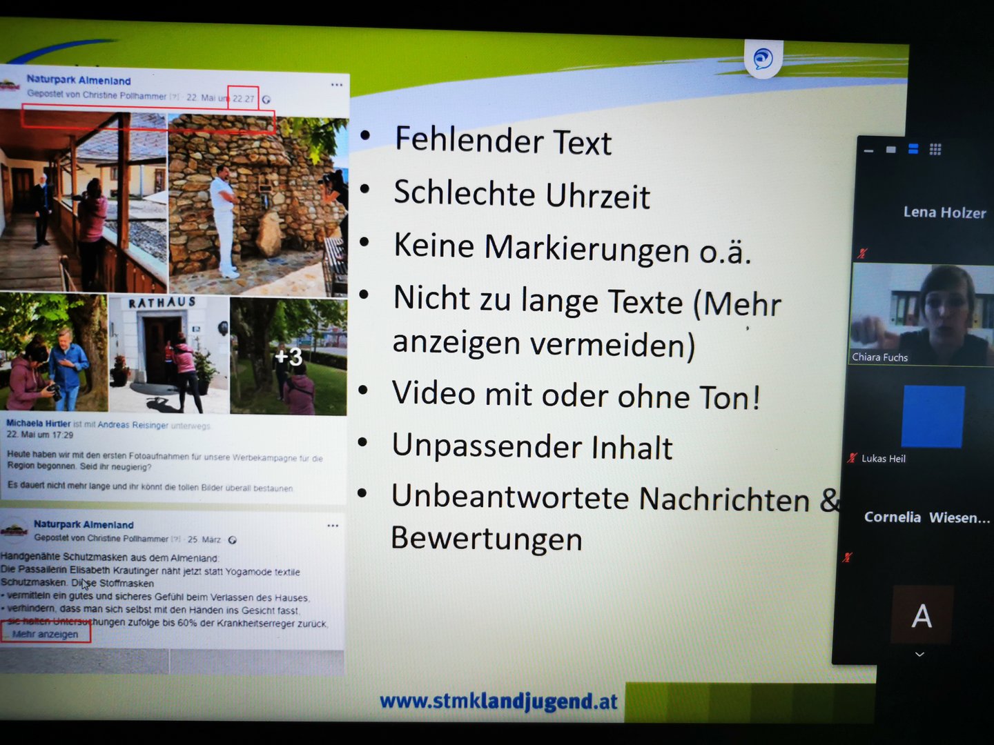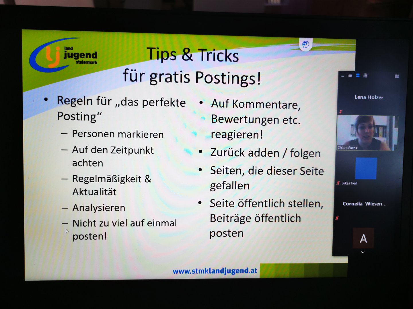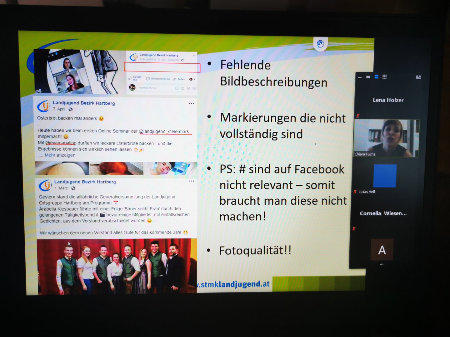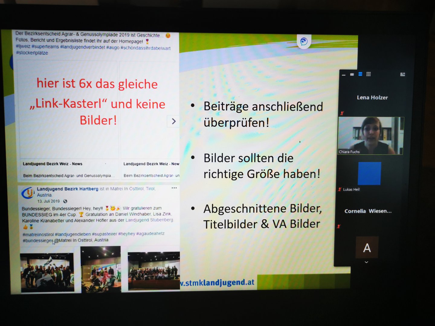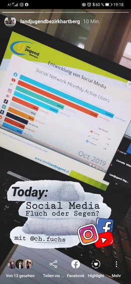 Am 19.6. durften einige Mitglieder unserer Ortsgruppen mit Chiara Fuchs Tipps und Tricks zur Anwendung von Instagram, Facebook und Co. für Vereine kennen lernen.